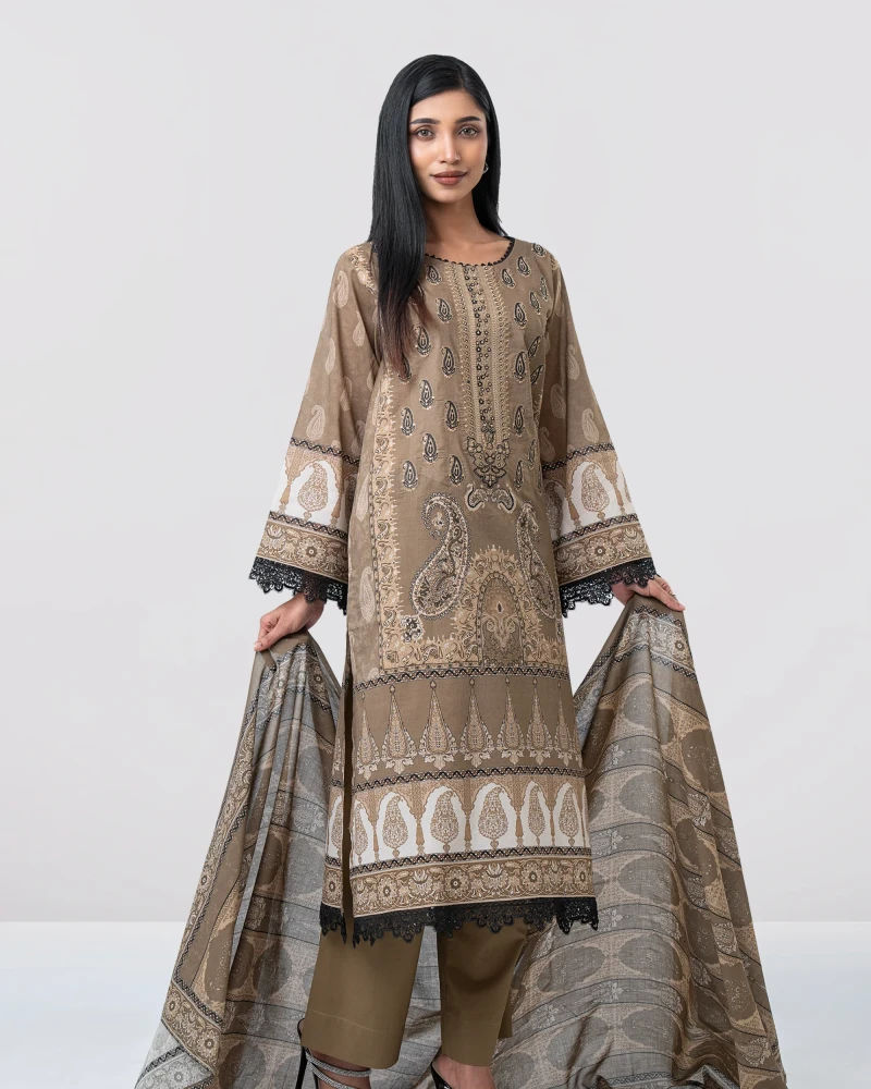 Relaxed Fit Digital Printed Three-Piece Lawn